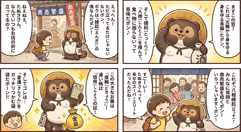 信楽焼の狸には8つの意味があります