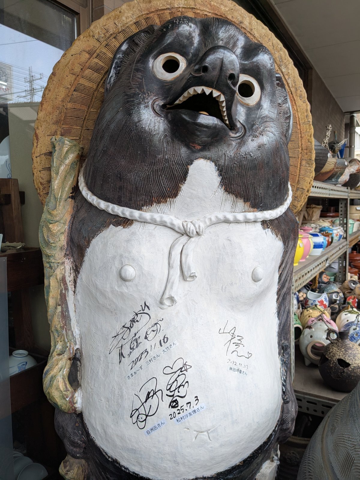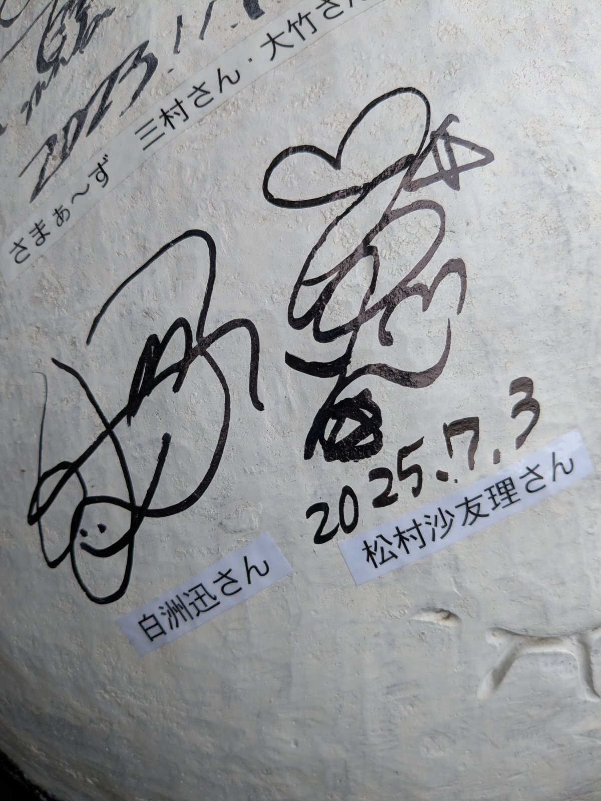映像配信サービスLemino(NTT DOCOMO)実写配信ドラマ「今日もふたり、スキップで」 当店入り口の看板狸に白洲迅さん、松村沙友理さんのサインをしていただきました。 「今日もふたり、スキップで」特設サイト
